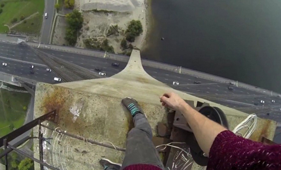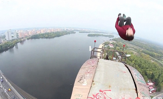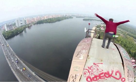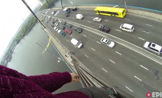 【环球网综合报道】据英国《每日邮报》4月1日报道,来自英国的詹姆斯•金斯顿和他的同伴穆斯汤•万提德一同爬上乌克兰首都基辅的莫斯科大桥,再桥顶尝试各种危险动作,并用摄像机记录下整个惊险过程。