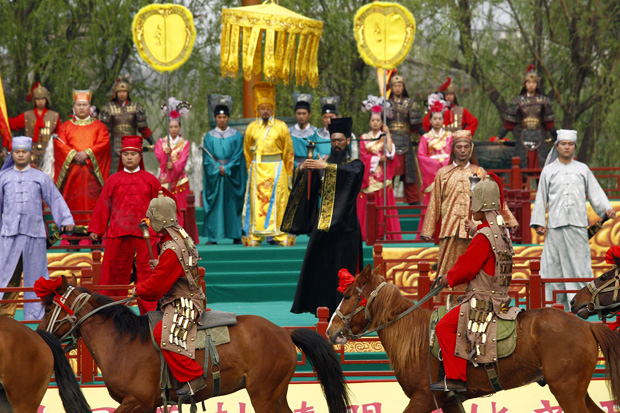 中国(开封)清明文化节开幕 再现包拯颁新火。