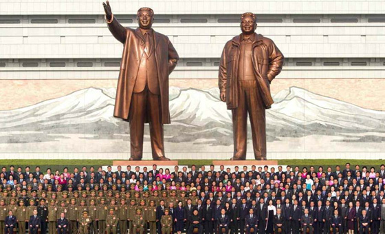 朝鲜最高领导人金正恩于10日与朝鲜最高人民会议第13届代议员们一起在平壤万寿台金日成、金正日铜像前合影。金永南、朴凤柱、崔龙海、李永吉、张正南等最高人民会议代议员参加了合影留念。各位代议员高呼“万岁!”庆祝第十三届最高人民会议第1次会议成功召开,并祝贺金正恩领导朝鲜走向富强的社会主义国家发展的转换期。