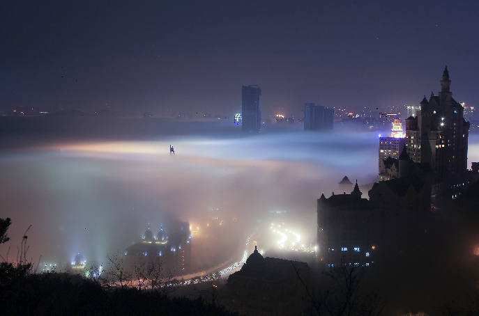 大连现平流雾 城市变仙境
