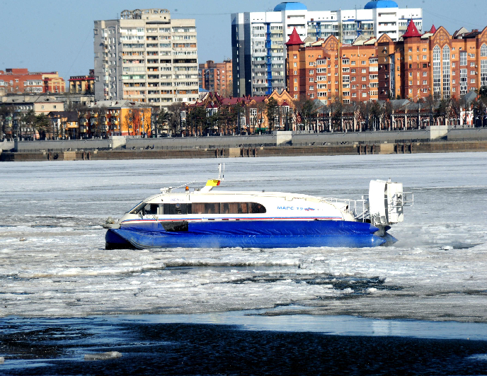 随着天气转暖,中俄界江黑龙江黑河段于近日开江,满江冰排顺流而下。黑河市货运口岸于4月15日闭关,待流冰期恢复通关。4月16日,黑河段开通客运气垫船,作为流冰期的一种特殊交通运输方式,中俄双方共投入15艘气垫船运输旅客。