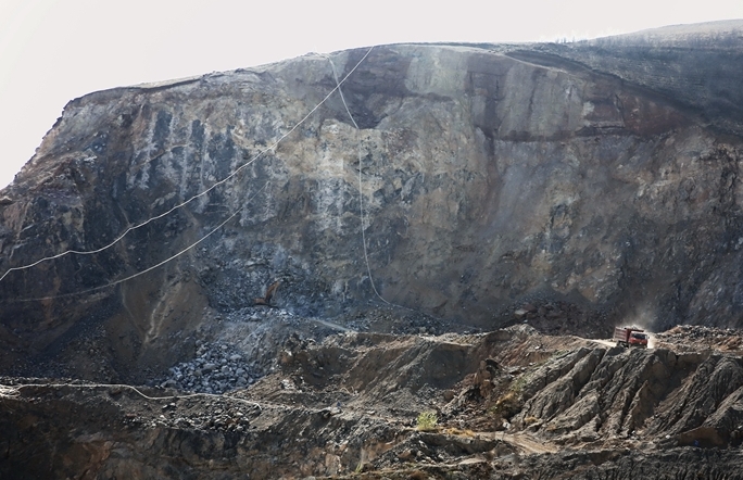礼泉县五凤山一家石料厂开山采石6年时间山半个山体已被挖空。 本报记者 邓小卫 文/图