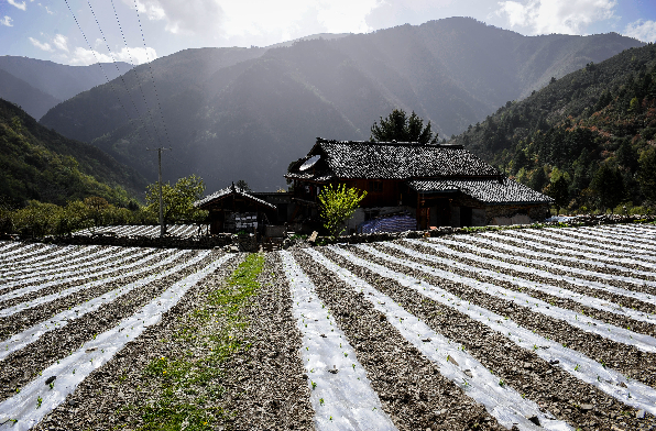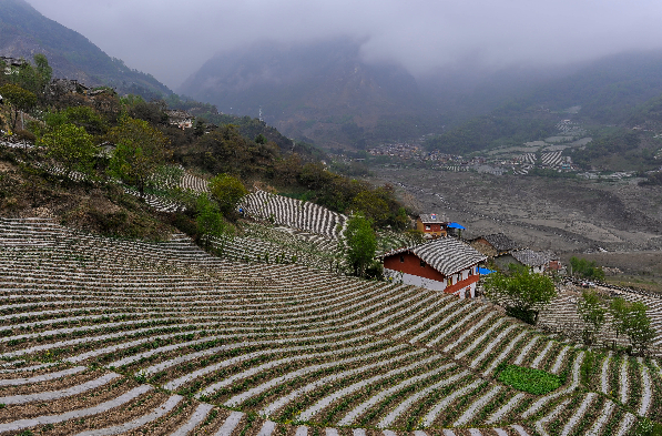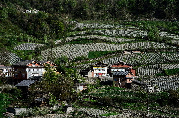 宝兴县硗碛藏族乡泽根村的田园景色(4月27日摄)。