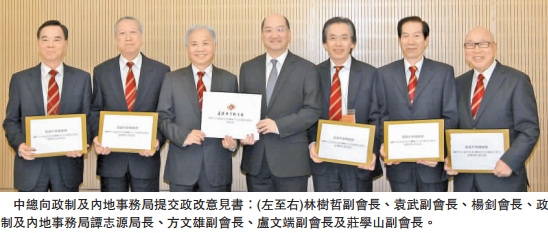 對於2016年立法會產生辦法,中總建議應暫時維持現行立法會的議席數目與組成安排不變,并讓社會各界聚焦普選特首的討論。該會亦強調,功能組別具有廣泛代表性,更能照顧和平衡社會各界及市民的整體利益,而功能組別更是香港政治體制行之有效的部分,必須予以保留。