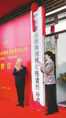 全国人大常委会原副委员长周铁农,中国文联党组书记、副主席赵实,国家新闻出版广电总局副局长孙寿山,中国文联党组成员、副主席李前光,中国文联党组成员、书记处书记罗成琰,中宣部文艺局、中央文资办、国家新闻出版广电总局报刊司和规划发展司、中国文联出版办负责人汤恒、王家新、艾立民、孔德龙、范小伟,中国书协主席张海,分党组书记、驻会副主席兼秘书长陈洪武,部分顾问、副主席及副秘书长参加揭牌仪式。仪式由中国书协副主席、中国书法出版传媒资产管理委员会主任赵长青主持。仪式上,有关领导为中国书法出版传媒有限责任公司、中国书法出版社和《中国书法报》揭牌。