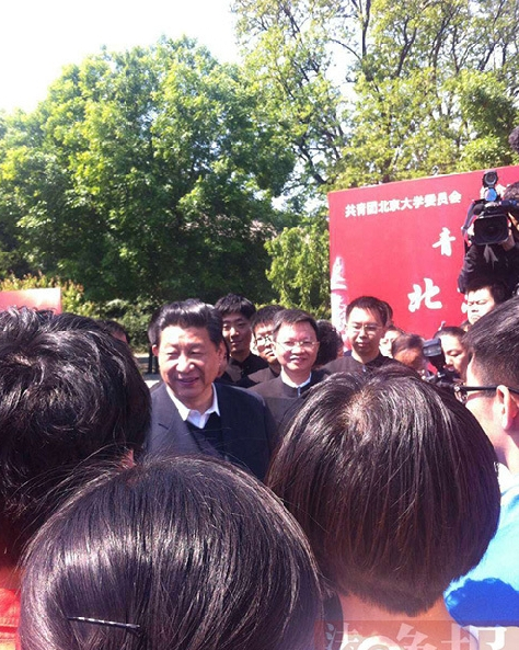 【习近平今日赴北京大学视察】据北大未名BBS:今天是五四青年节暨北大116周年校庆,习大大一行已经到了北大人文学苑啦!