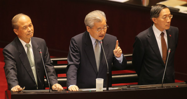 行政院長毛治國(中)20日表示,若受邀請加入亞投行將再評估。