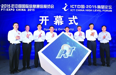 9月22日,由工業和信息化部、中國國際貿易促進委員會共同舉辦的“2015年中國國際信息通信展覽會”在北京開幕。工信部部長苗圩、中國國際貿易促進委員會副會長尹宗華致辭,工信部總工程師張峰主持開幕式。中央網絡安全和信息化領導小組辦公室副主任、國家互聯網信息辦公室副主任莊榮文,北京市副市長隋振江,中國電信總經理楊傑,中國移動董事長尚冰,中國聯通董事長王曉初,中國鐵塔公司董事長劉愛力等出席活動。