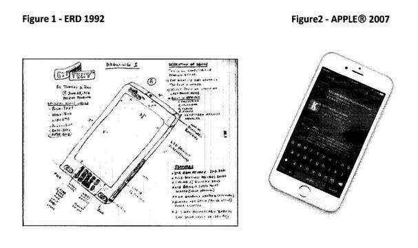 羅斯的訴訟文件包含了原先專利的草圖,他稱,蘋果的抄襲品“基本上與他的ERD技術圖紙相同,蘋果的設備(iPhone、iPod和iPad)在外觀和感覺上都一樣。”羅斯除了索賠100億美元外,還要求分享蘋果未來收入的1.5%“作為合理的版稅”。