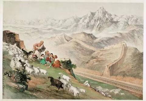 ▲石魯《古長城外》,1954年,國畫,91.6cm×130cm,中國美術館藏