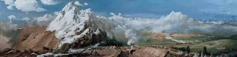 如此構思,是他“乘汽車駛過烏鞘嶺時,轉瞬間從蘭新鐵路穿過破缺斷殘的古長城的形象而引起的”,“一個烏鞘嶺工地的工人告訴他們:請你們畫工地時,一定要畫上這壯麗的經年不化的雪山”。再加上作者還有過去在少數民族地區的一段生活感觸。