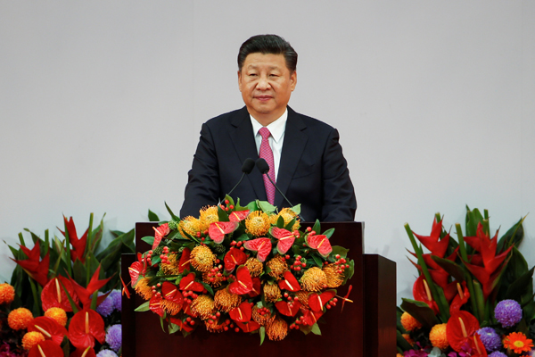 7月1日,新一屆特區政府就職典禮於上午9時舉行,習近平致辭。在致辭中,習近平講到:「香港已經回歸祖國20年。依照中國的傳統,男子二十謂之弱冠,今天就是香港特別行政區的成年禮,正所謂『如竹苞矣,如松茂矣』。回首香港特別行政區的成長歷程,我們可以自豪地說,20年來,香港依託祖國、面向世界、益以新創,不斷塑造自己的現代化風貌,『一國兩制』在香港的實踐取得了舉世公認的成功。」