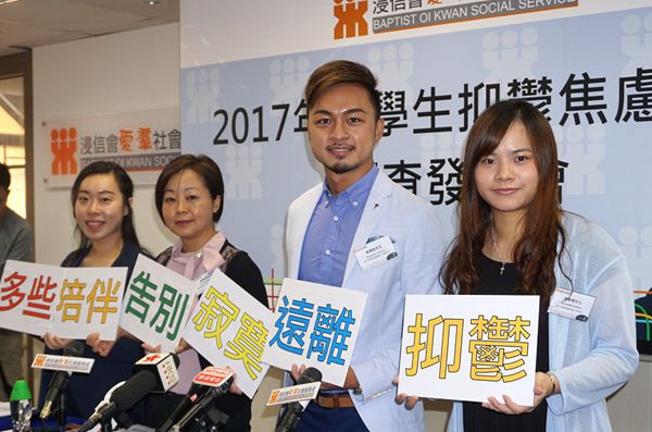 浸信會愛幠社會服務處於去年10月至今年6月期間,對全港15區共37間中學之中一至中六學生,進行抑鬱焦慮狀態調查,共收回15560份問卷。調查顯示,呈不同程度抑鬱徵狀困擾的中學生占53%,即每兩個學生便有一個受抑鬱困擾,機構推算全港已有超過1.2萬中學生的抑鬱傾向已嚴重至臨床級別。不少學生表示主要受到文憑試壓力影響,其次是學業及前途問題。