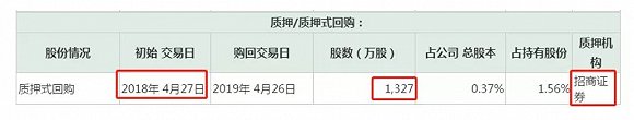 2018年4月,招商证券与康得集团签订质押协议,康得集团将其持有的康得新股票1327万股质押给其进行融资,交易金额为人民币1亿元。