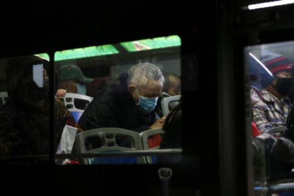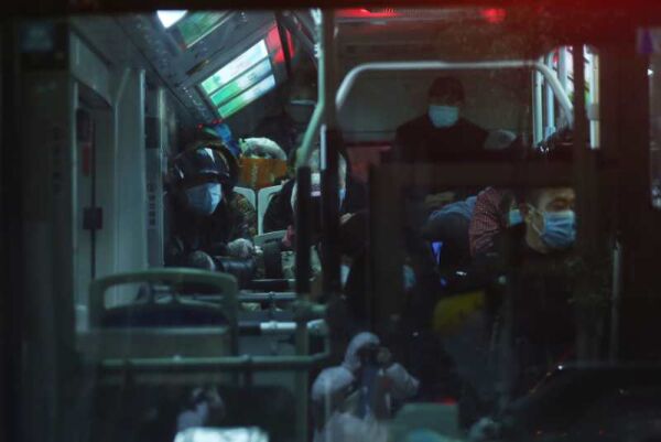 来到转运现场后,环球时报-环球网记者发现负责转运这批重症病人的是一辆公交车,车上已经坐满30多位老人,有些老人没有座位只能站着,还有些老人只能坐在公交车的过道里,公交车司机与病人之间没有任何隔离措施,据观察,公交车司机本人防护装备也不符合接触重症患者所需的三级防护标准。