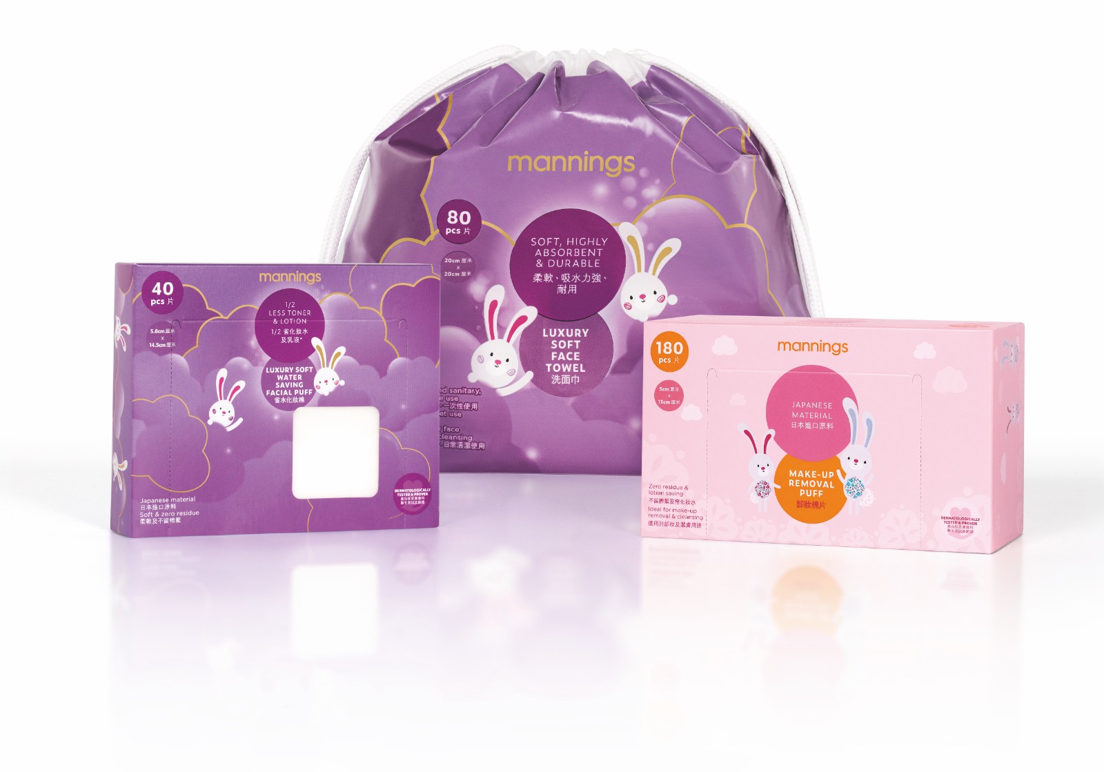 原色化妝棉(下),HK$17/80 片,省水化妝棉(上),HK$12/40 片。