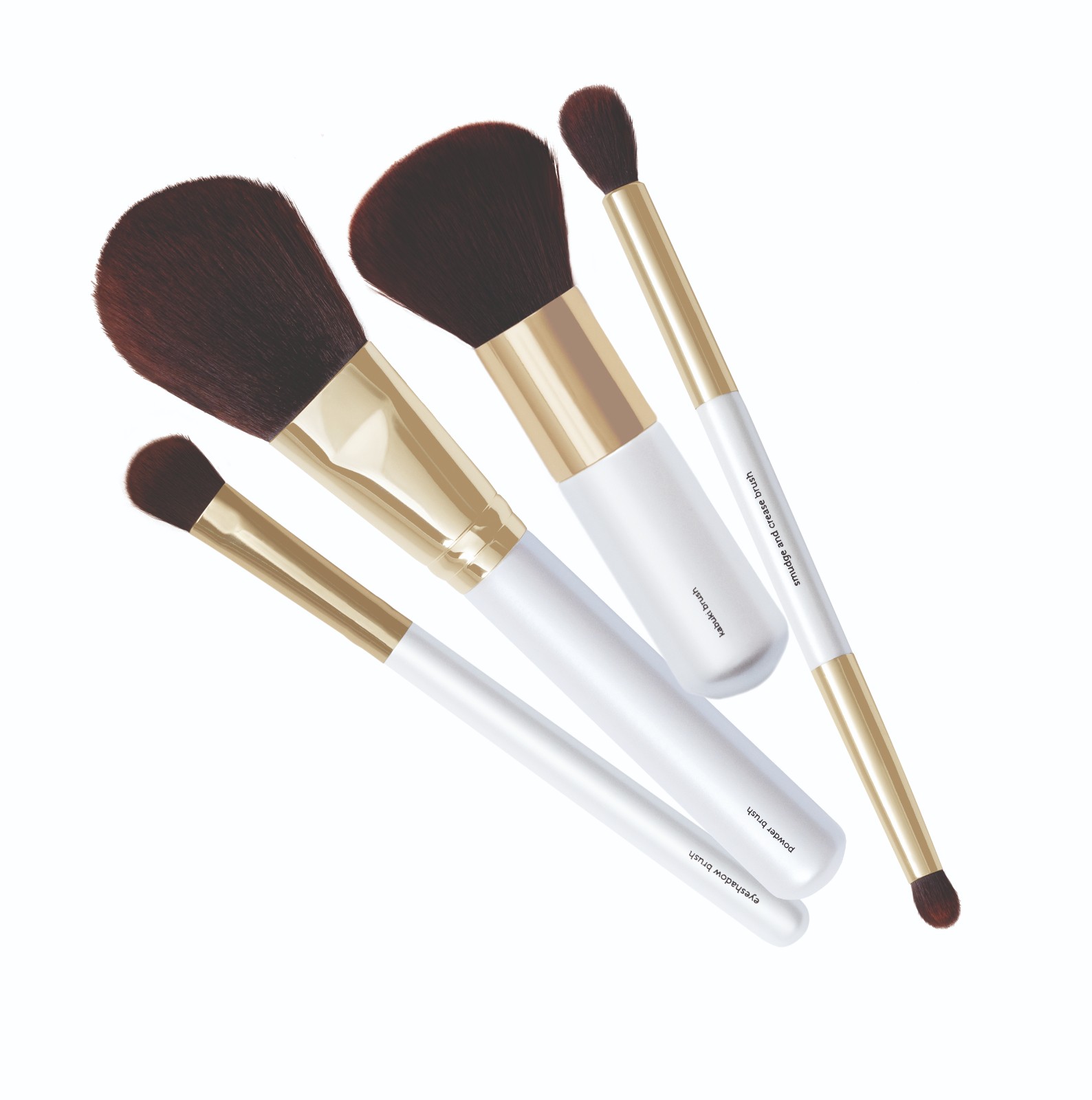 從左至右,眼影掃(HK$45)、蜜粉掃 (HK$65)、多功能化妝掃/Kabuki掃 (HK$65)、雙頭眼影掃 (HK$45)。