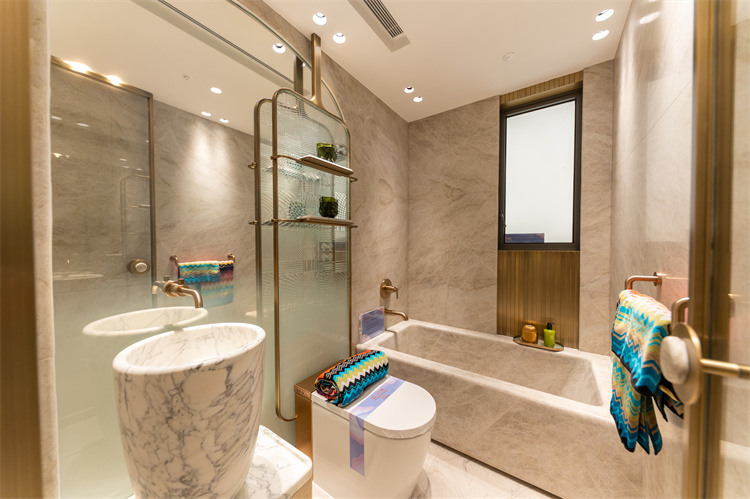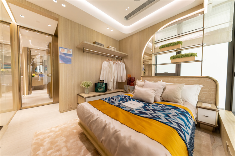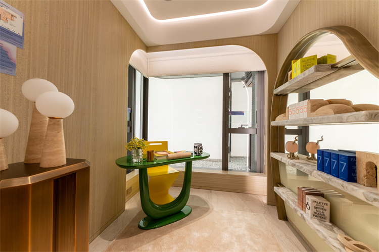 他又稱,飯廳除了擺放有趣形態的家具之外,牆上更掛上最新的NFT藝術,令整個空間充滿趣味。書房及廚房門採用特別訂製的波浪玻璃,配以弧型金屬門框,令層次空間更見豐富。主人睡房採用流線型牆身設計,貫徹書房及廚房之弧型門框,令整體設計充滿流線形態,全屋風格一致。