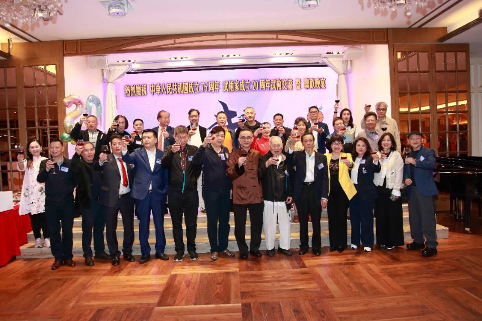 = 2024年12月8日,「武術家」成立20周年武術交流暨聯歡晚宴在香港太古城CLUB ONE酒樓舉行,主禮嘉賓有:香港立法會郭偉強議員、原中聯辦宣文部陳亞瓊副部長、中國香港體育工作者聯會高克寧主席、香港福清同鄉聯誼會翁雅玲監事長、香港南平聯誼總會李孝諄副會長兼秘書長、中華國際文化交流協會莊偉波主席、歐美大地高峰董事長、中國澳門武術家協會李文欽主席、香港閩清同鄉聯誼會黃挺光會長、國際自然門聯合總會洪少葵副主席、深圳市太極拳研究會曾東霞副會長、北京自然門武學研究會韓金龍會長、香港太極總會李法平會長、中環時光彭舜玟創會主席、三石軒藝術汪建生董事長、筲箕灣農業工商聯會林愛蓮理事長、順德大良太極拳協會蘇惠卿會長、香港建陽聯誼會吳明會長、東井圓林東慈善基金暨美燕主席、香港珠海前山聯誼會余秀英會長、武術導演李釗等。