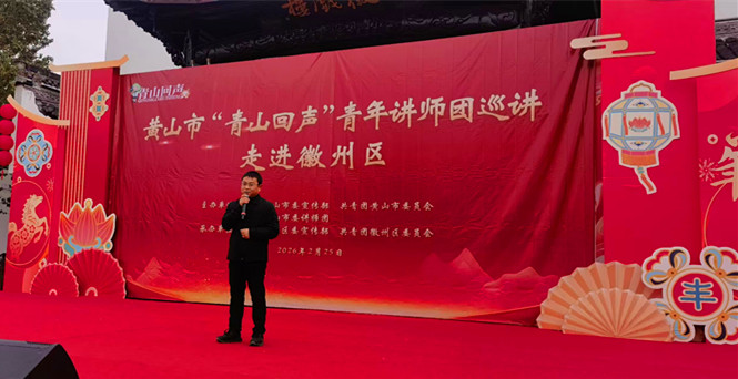 2月25日,安徽黃山市「青山回聲」青年講師團主題宣講活動在徽州區岩寺老街古戲台精彩開講。活動將理論傳播與民俗盛會深度相融,讓青春之聲在老街巷陌久久迴蕩,把「十五五」規劃精神精準傳遞到基層群眾心間,讓理論宣講告別「刻板化」、煥發「新活力」。
