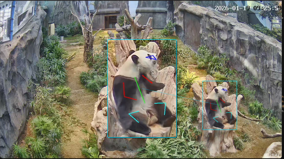 據了解,這創新系統運用機器學習技術分辨物種,如大熊貓的主要身體特徵,包括頭部、四肢及身軀,並辨識動物所展現的不同行為。從區分靜態與動態活動,到追蹤如行走、攀爬、翻滾和跳躍等複雜動作,又或是偵測特定動作,如「舉高手臂」(大熊貓在地上翻滾動作的前兆)。系統為分析較複雜的動物行為提供細緻數據,讓公園團隊可深入分析複雜的動物行為模式,為持續研究和制定具針對性動物護理策略奠定基礎。