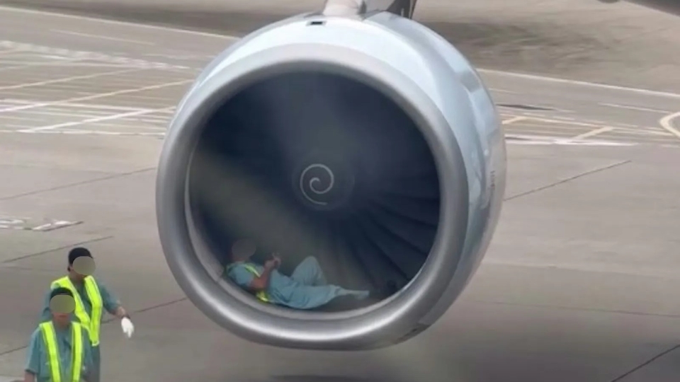網上流傳,香港國際機場有3名地勤人員於一客機的引擎前工作,其中二人站在引擎附近,另有一人躺臥在引擎範圍。網民笑言「好爽爽咁」,又引來熱烈討論。機場管理局回應傳媒時澄清,確認維修人員當時正進行飛機引擎的維修工作。