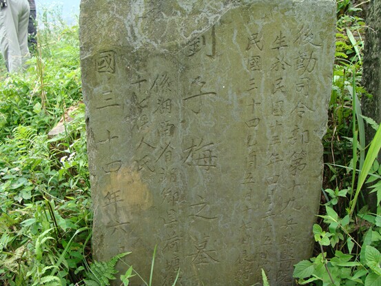 纪念塔塔基下,记者拍到这样一块有详细记载的墓碑,碑文云:【后勤司令部第17兵站医院准尉 生于民国15年4月25日戍时 殁于民国34年5月17日辰时 刘子梅之墓 湖南湘乡县荷塘乡17保人氏 民国34年6月立】。这是一个女军医,在抗战胜利的前夜,青春年华的她,为了抗击日军,牺牲在雪峰山下,和千千万万的抗日英烈一样,用稚嫩的肩膀托着民族的希望!