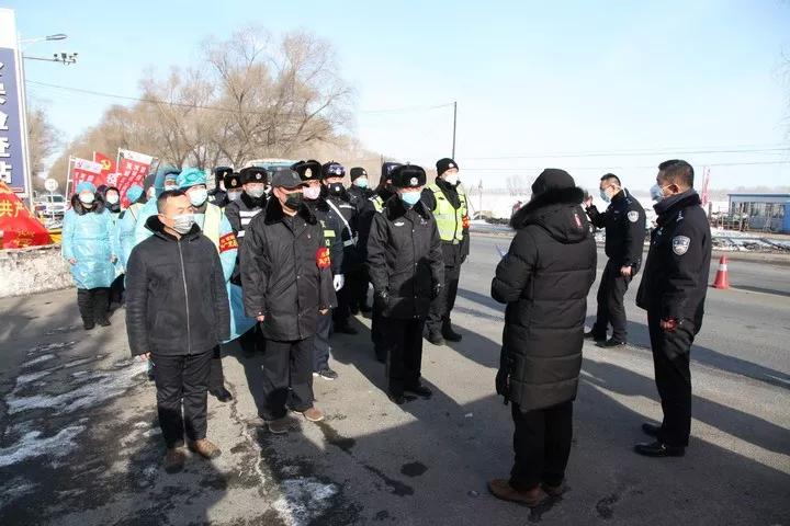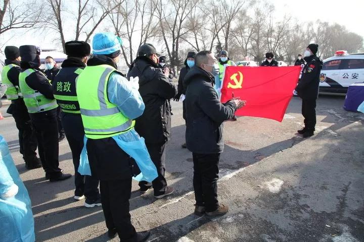 為進一步鼓舞士氣,2月2日,在蘭棱檢查站舉行「蘭棱檢查站聯合黨支部抗擊疫情宣誓儀式」。在儀式上,由雙城公安分局黨組成員、副局長李樹智到會講話、授旗,並由雙城區衛建局副局長於春永帶領聯合黨支部黨員面對黨旗宣誓。