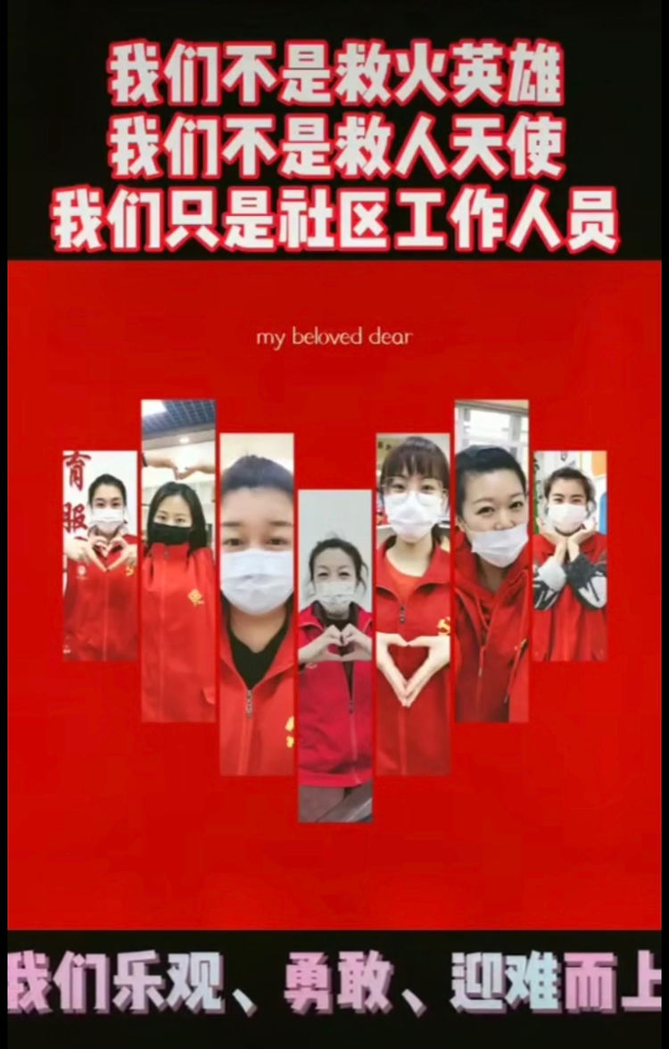 建安街工委楊書記在朋友圈呼籲:「這些可敬可愛的社區幹部,他(她)們春節沒休過一天,排查、發放酒精、小區封閉……白天黑天處處有他(她)們的身影。他(她)們大多數都是80、90後的孩子,有一位社區女孩,搬着沉重的酒精箱到樓上為居民發放酒精,被一居民嫌送的晚而辱罵了很久,殊不知這個90女孩己連續三天挨戶樓上樓下的派送,這個女孩流着眼淚耐心的一遍遍解釋安撫,轉身擦乾眼淚又繼續工作。請理解支持他(她)們吧,他(她)們也是孩子,疫情面前這些孩子是勇敢的逆行者,他(她)們是最可愛的人!」