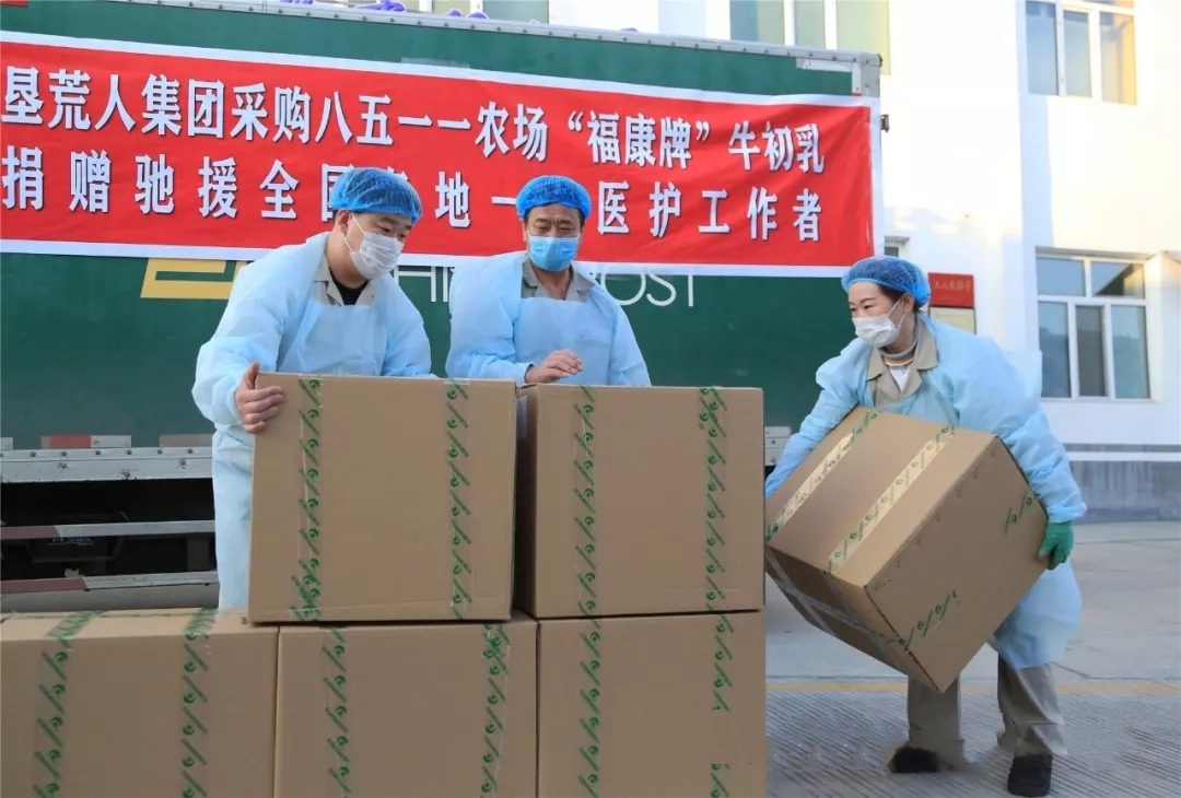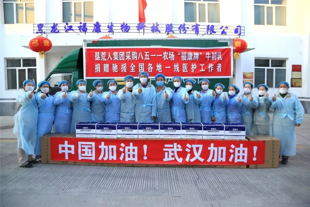 【香港商報網訊】2月19日是黑龍江福康生物科技股份有限公司復工生產的第一天,公司在做好疫情防控的基礎上,加緊生產出墾荒人集團訂購的500箱市值近300萬元的「福康牌」牛初乳產品。而墾荒人集團作為黑龍江省八五一一農場有限公司「福康牌」牛初乳產品的獨家代理銷售商,更是以遍布全國26個省市(區)的300多家實體尅店為依託,將這批愛心產品捐贈給全國各地一線醫務工作者,向奮戰在抗「疫」一線的「白衣衛士」致敬!農場黨委副書記杜秀華、副場長亓力與公司員工共同見證了這一暖心時刻。
