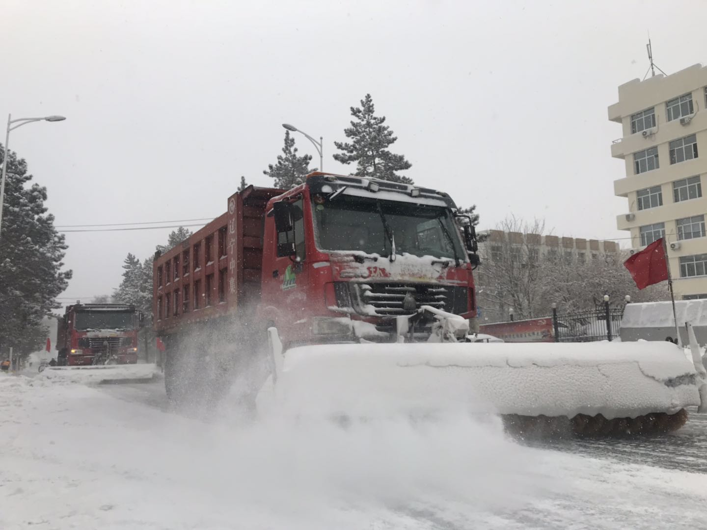 在疫情防控期間,清雪工作以「保安全、保暢通」為原則,在清雪作業前做好作業人員測溫及車內消殺,做到防護標準不放鬆,不聚集、不集中作業,在保障安全作業距離的基礎上開展工作。