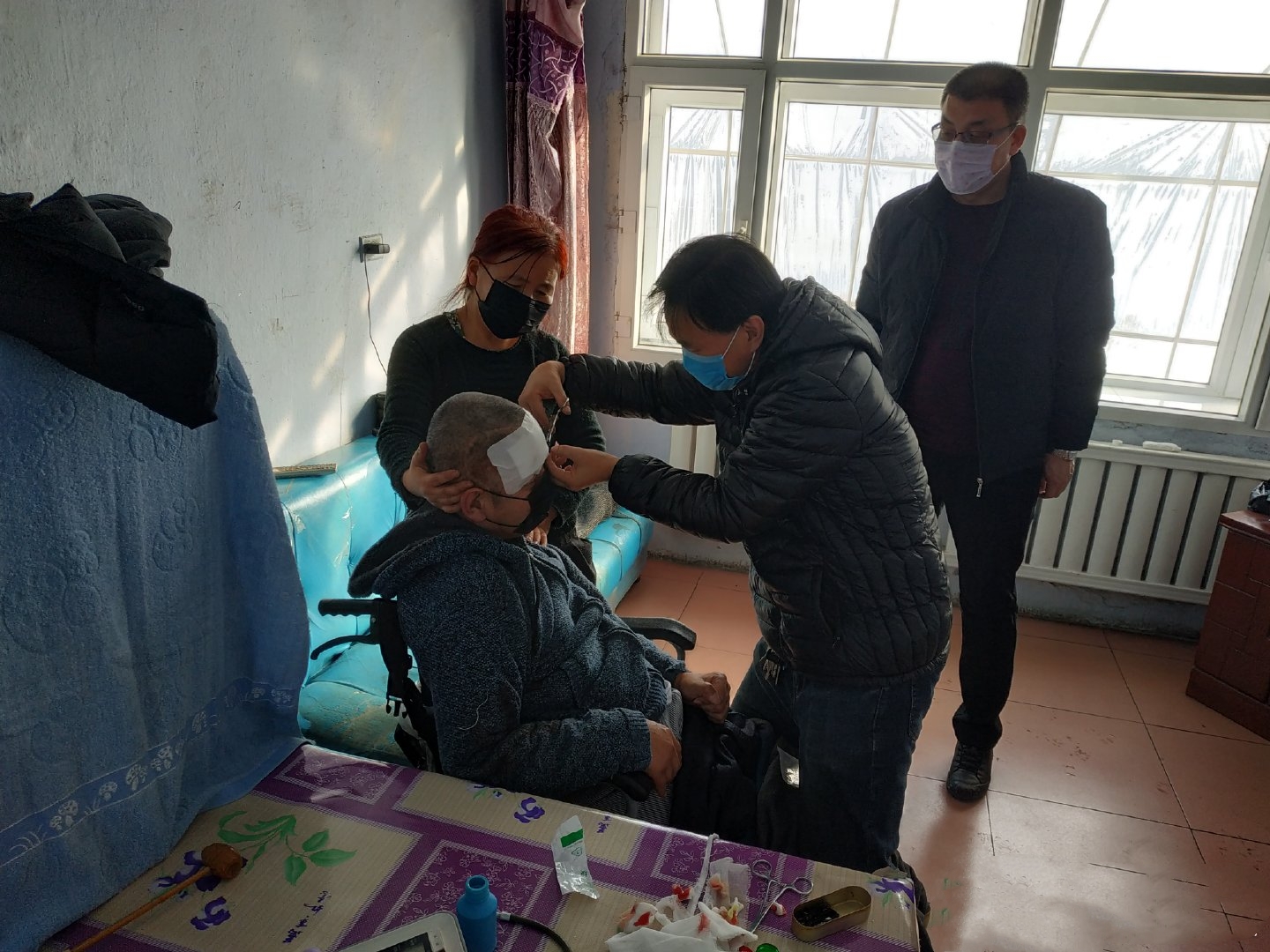 據了解,全村有1000多戶,3400多人,村民在外打工的有400餘人。每當入戶排查時,駐村幹部都堅持走在防疫工作隊伍最前面。在防疫封村期間貧困戶王朝剛突發癲癇從輪椅上摔了下來,頭部流血不止,他妻子擔心到醫院發生交叉感染,就給駐村工作隊打來電話求援。駐村工作隊帶着村醫安正峰第一時間趕到他家處理傷情,現場處置完畢後王朝剛的妻子要付錢,安正峰大夫當場表示有困難找黨員,特殊時期免費治療。村民周玉濱家是2016年脫貧的建檔立卡貧困戶,返鄉過年的女兒出現了發熱癥狀,村醫郭慶偉主動請纓承擔護送任務,他說:「我是醫生,還是黨員,我來送最穩妥!」駐村工作隊長蘇萬臣、村支部書記張廣龍駕車跟隨備用,確保病人及時就醫,中途不與第三方接觸。經醫院診斷排查,病人只是一般感冒,常規治療即可。就這樣,一次可能危及整個民安村、整個街道的危機成功化解。