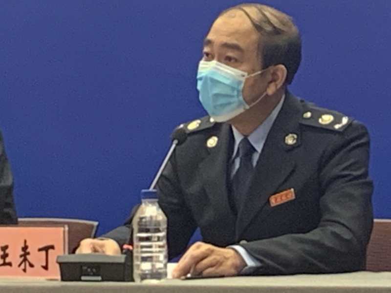 省稅務局社會保險費處處長王未丁回答記者提問 付彥華/攝