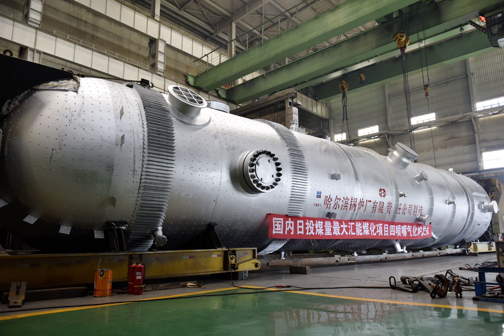 【香港商報網訊】面對新冠疫情,哈電集團哈爾濱鍋爐廠有限責任公司在全面做好疫情防控的同時,全力推進重點工程項目復工復產,積極履行央企責任,為國家經濟發展貢獻力量。日前,哈電鍋爐研製的內蒙古匯能煤化二期項目首台四噴嘴水煤漿氣化爐順利產成發運,其餘兩台也將於近期產成發運。該氣化爐單爐日投煤量達到3300噸,為目前世界日投煤量最大氣化爐,刷新了哈電鍋爐2019年出產的單爐日投煤量3000噸水煤漿氣化爐的記錄,該設備同時是國內第一個內壁堆焊鎳基合金的四噴嘴氣化爐,四噴嘴氣化爐由於其四個方向火焰端匯於一點,同心度要求極高,製造難度大。該氣化爐的順利產成發運彰顯了哈電鍋爐在氣化爐領域強大的設計製造能力,樹立了承接超大型化工項目核心設備設計製造新的里程碑。