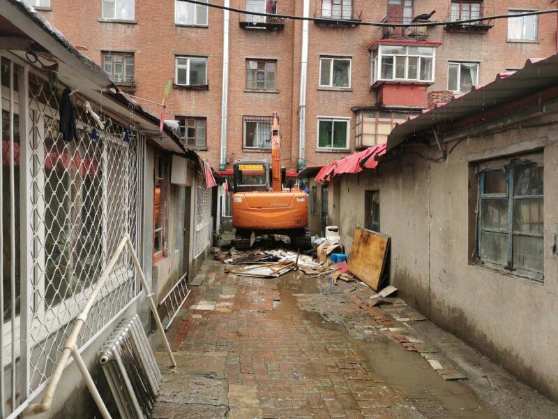 伴隨着挖掘機機臂的起落,一處處多年影響居民生活的違建應聲倒下,狹窄的空間頓時寬闊了不少。據現場工作人員介紹,星光家屬區是老舊小區,由於修建時間較早,不少居民在樓前院後的空地上旁搭建了車庫、門面,佔用了公共空間。「星光家屬區樓與樓之間的間距原本有近10米寬,因為違建佔用,僅2米左右的寬度供行人過路,讓市民出行極不方便。」現場工作人員表示,這些違建的形成不僅影響市容市貌,還帶來了嚴重的安全隱患。