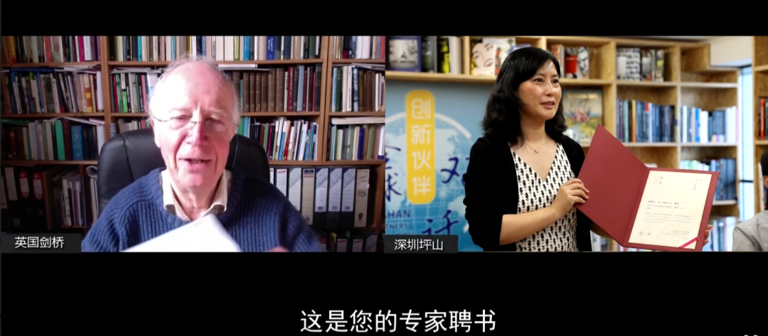 會議期間,還舉行了全球創新連線暨新增委員「雲聘任」,聘任艾倫·麥克法蘭為坪山文化智庫委員。艾倫·麥克法蘭是英國歷史學家、人類學家,劍橋大學國王學院名譽教授、終身院士,英國皇家歷史學會院士,皇家人類學會院士,英國科學院歐洲科學院院士。
