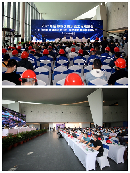 9月16日上午,記者在四川省成都市2021年度全市優質示範工程觀摩會上獲悉,由中國五冶承建的成都天府藝術公園·文博坊片區建設項目獲得2021年度全市優質示範工程稱號,目前該工程主體工程即將全面竣工,正在室內裝飾與總平打造階段,天府美術館、當代藝術館·圖書館林環水繞的蜀風畫卷景觀已初步顯現。