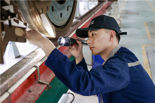 日常工作中,馬麒翔和他的同事們需要一直保持高強度的檢查作業,實時掌握動車組每個零部件的狀態。他坦言,「原先的知識儲備完全不夠,必須加強業務學習,不斷更新適應新的工作需要。」