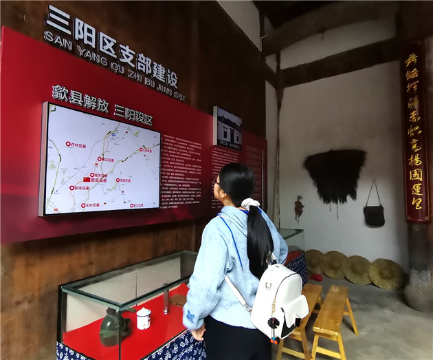 三陽鎮地處皖浙交界處,是有一定歷史的革命老區,有許多盪氣迴腸的紅色故事,在建黨百年和學黨史的時代背景下,三陽鎮黨委充分利用好自身紅色資源,挖掘紅色文化內涵,整合籌建紅色三陽展示館,經過對三陽村一處舊祠堂的改造維修,將昔日閒置房合理利用,建成一個集圖片、文物、影像、黨史培訓、紅歌教習為一體的體驗式紅色展示館。