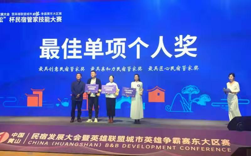 大賽分為民宿遊玩攻略介紹和“秋日物語”微場景佈置及展示兩個環節。祁門縣3名民宿管家選手通過ppT展示了以著名的祁紅文化和優美的生態資源為特色的主題民宿。在 “秋日物語”微場景佈置及展示中,選手通過泡茶、書法、黃梅戲表演等方式展示特色才藝。天之紅莊園民宿管家丁慧玲獲得“最具匠心民宿管家獎”,馮家頂民宿管家葉菲菲、紅旗山莊民宿管家汪淑萍分獲 “優秀民宿管家獎”。