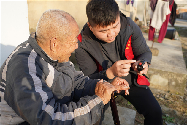 「老人家,這個定位手環你晚上充好電,白天出門時記得戴在手上。如果你在外面迷路了,不要着急,按下紅色按鈕,在原地等待,會有人去找你……」在巢湖市夏閣鎮大焦村,居家適老化改造工作人員正在給焦光召老人仔細講解智能定位手環和多功能手杖的使用方法。焦光召常年獨居,無人照顧,行動不便。除了定位手環,安徽省巢湖市民政局還專門為他量身改造了其他一些適老設施,如水泥坡道、床邊扶手、多功能助浴椅、多功能手杖等。感受到適老化改造帶來的方便,焦光召老人激動地告訴我們:「政府為我們老人什麼都想到了,方便我們的生活,我十分滿意。」
