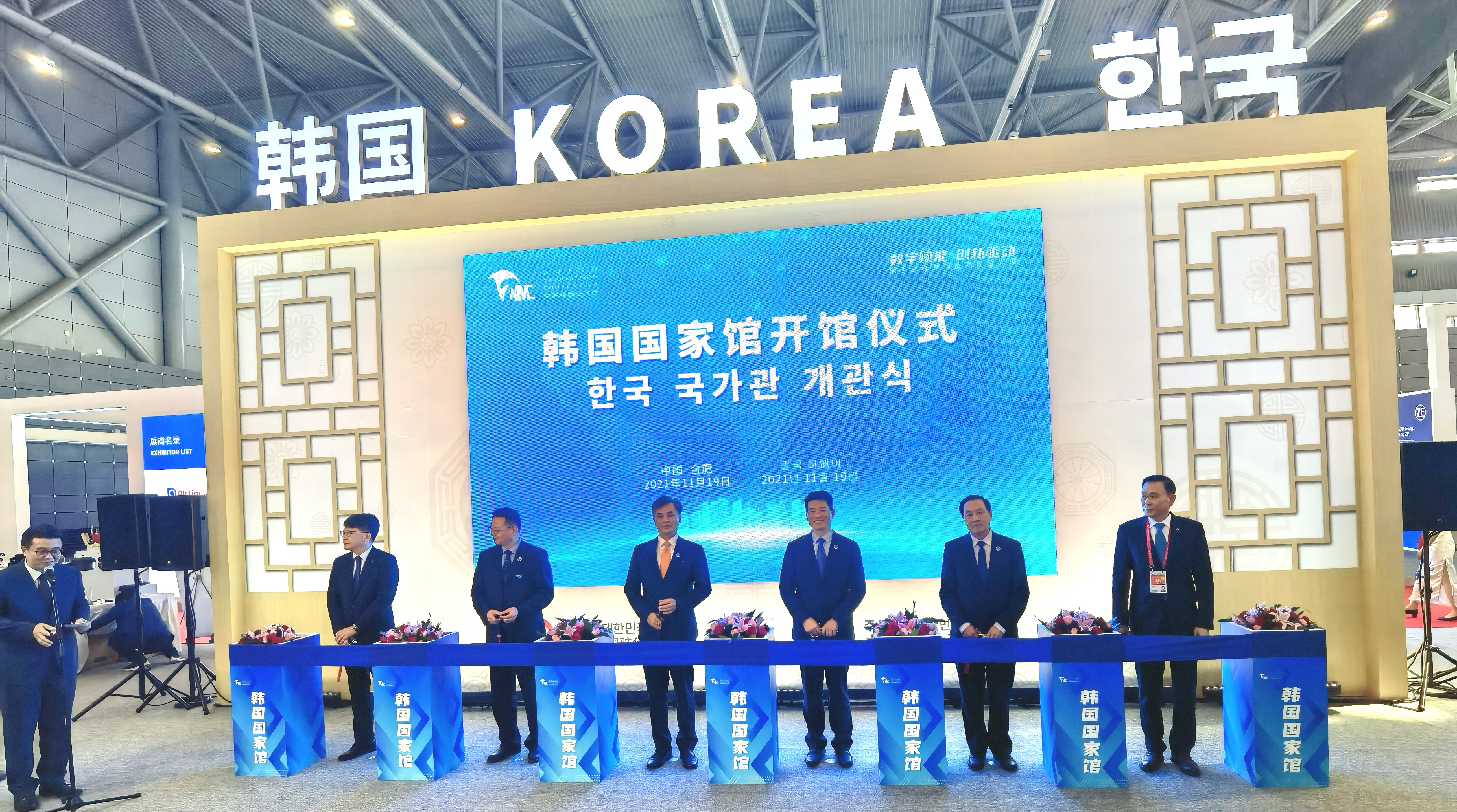 11月19日上午,2021世界製造業大會韓國國家館開館,韓國駐滬總領館總領事金勝鎬,安徽省委常委、副省長張紅文等出席韓國館開館儀式。作為本屆大會的主賓國,韓國組織該國30多家韓國企業參展,韓國國家館占地近1000平方米,展示了韓國工業機器人、分析監測設備等先進製造產品以及部分生活消費品。