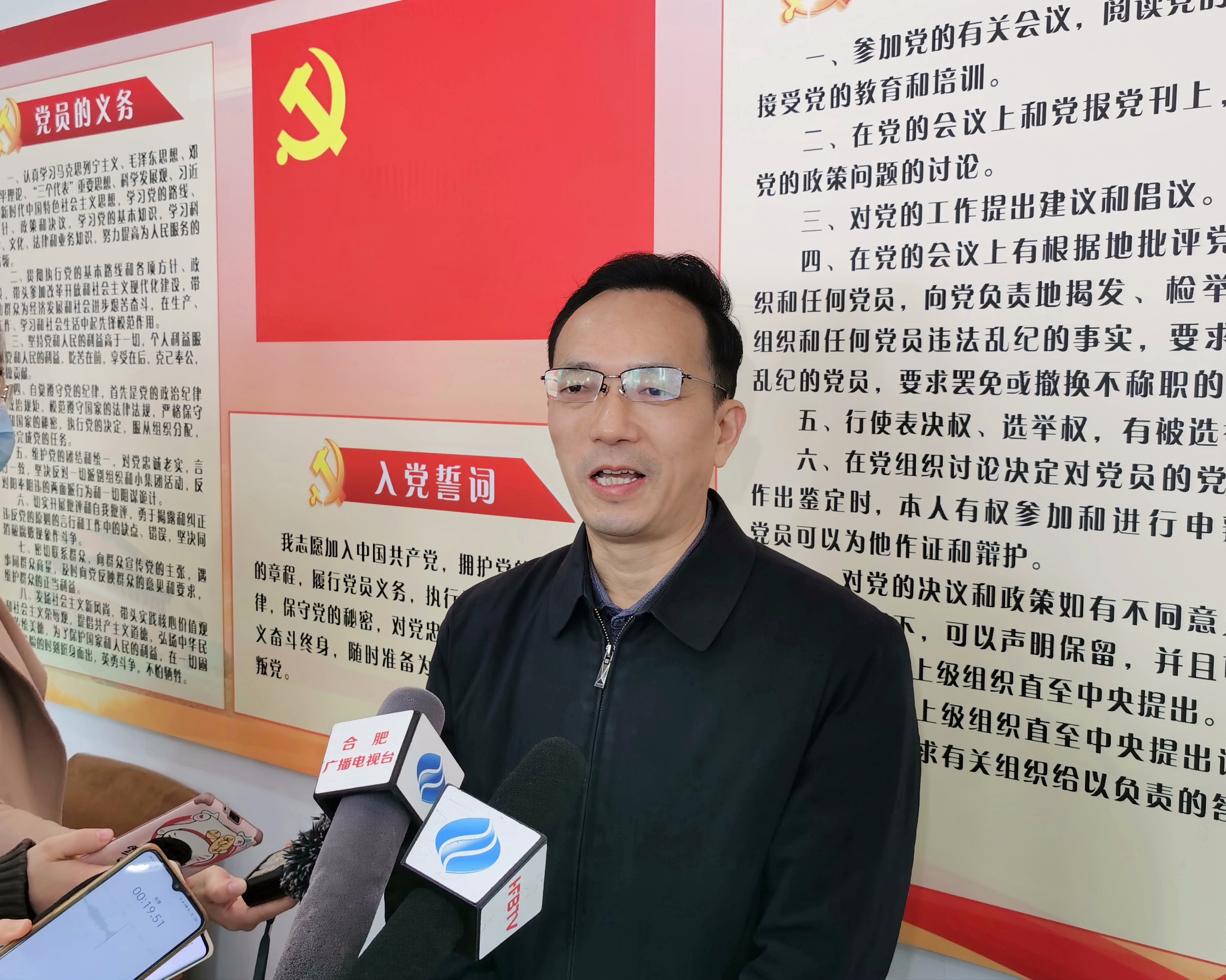 合肥市人社局總經濟師陳勇接受記者採訪(孫軍/攝)