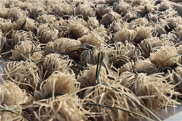 山芋粉絲的品質受天氣和溫度的影響較大,如果天氣不好,粉絲不能及時曬乾就會變質,溫度變暖也不利於粉絲的儲存。為了解決這些問題,今年該鄉又投入51萬元資金為加工廠新建了凍庫和烘房,進一步提高了加工廠的產能。盛冬明介紹道:“烘房和凍庫就很好地解決了這個問題,即使遇上雨雪天氣和氣溫回升,加工廠依然能夠正常產出山芋粉絲,大大提高了生產效率。”
