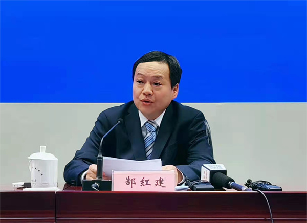 安徽省自然資源廳黨組成員、副廳長郜紅建介紹有關情況,並回答記者提問現場(孫軍/攝)