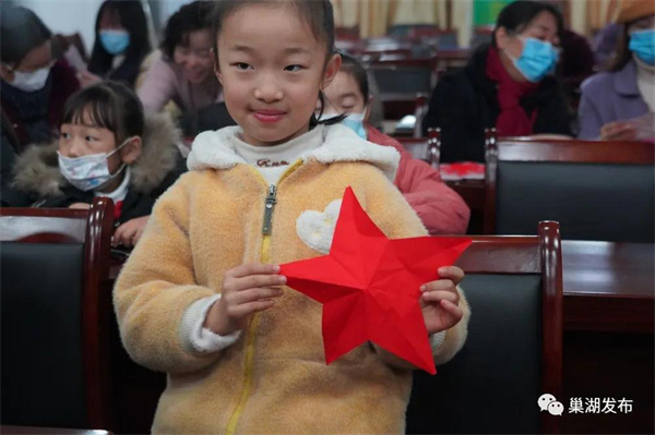 「老師,我剪出來了!」9歲的楊琬臨很快就完成了自己的五角星剪紙作品,開心地向大家展示了起來。