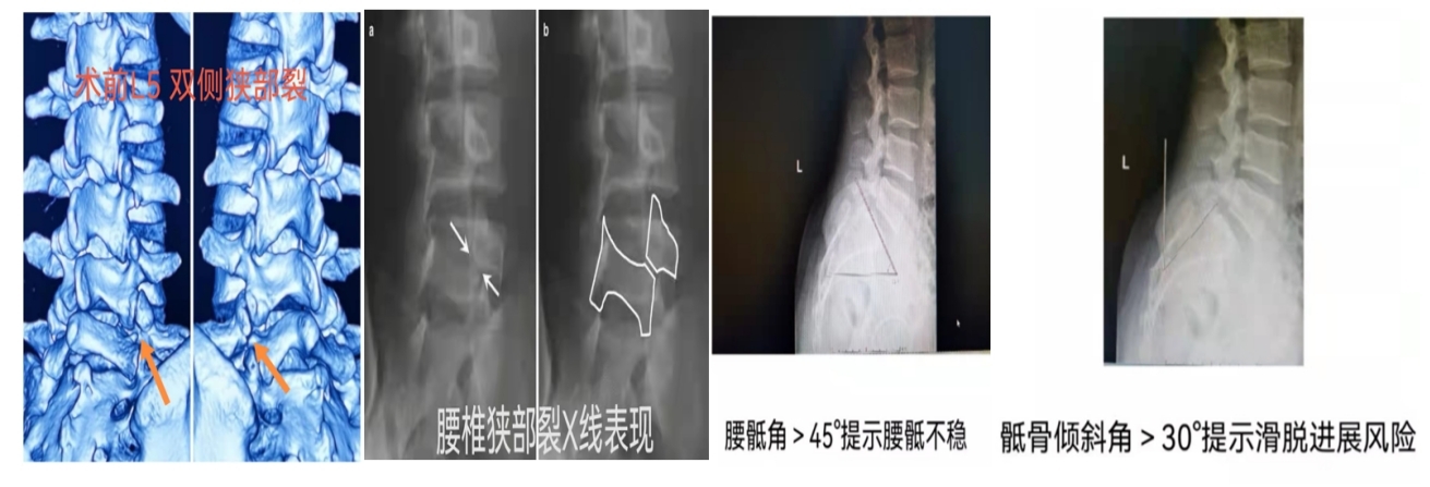 術前影像示雙側L5峽部裂伴L5S1椎體不穩