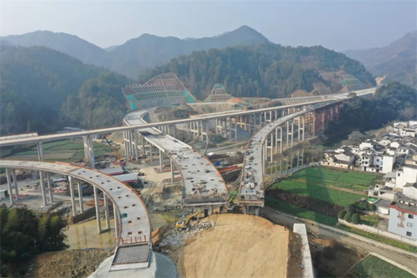 在五渡互通立交项目建設現場,金屬敲打聲、機器轟鳴聲不絕於耳,建設者們正搶抓晴好天氣趕工期,全力保障建設進度。該互通立交共設置A、B、C、D、E匝道橋5座和主線左、右線大橋2座,同時設置匝道收費站及管理區、五渡養護工區各1處,主要為歙縣北岸鎮及深渡鎮周邊約20萬居民通行高速提供便利。同時,該项目有利於山水畫廊深渡碼頭間的連接,對新安江到千島湖的旅遊資源開發起到促進作用。