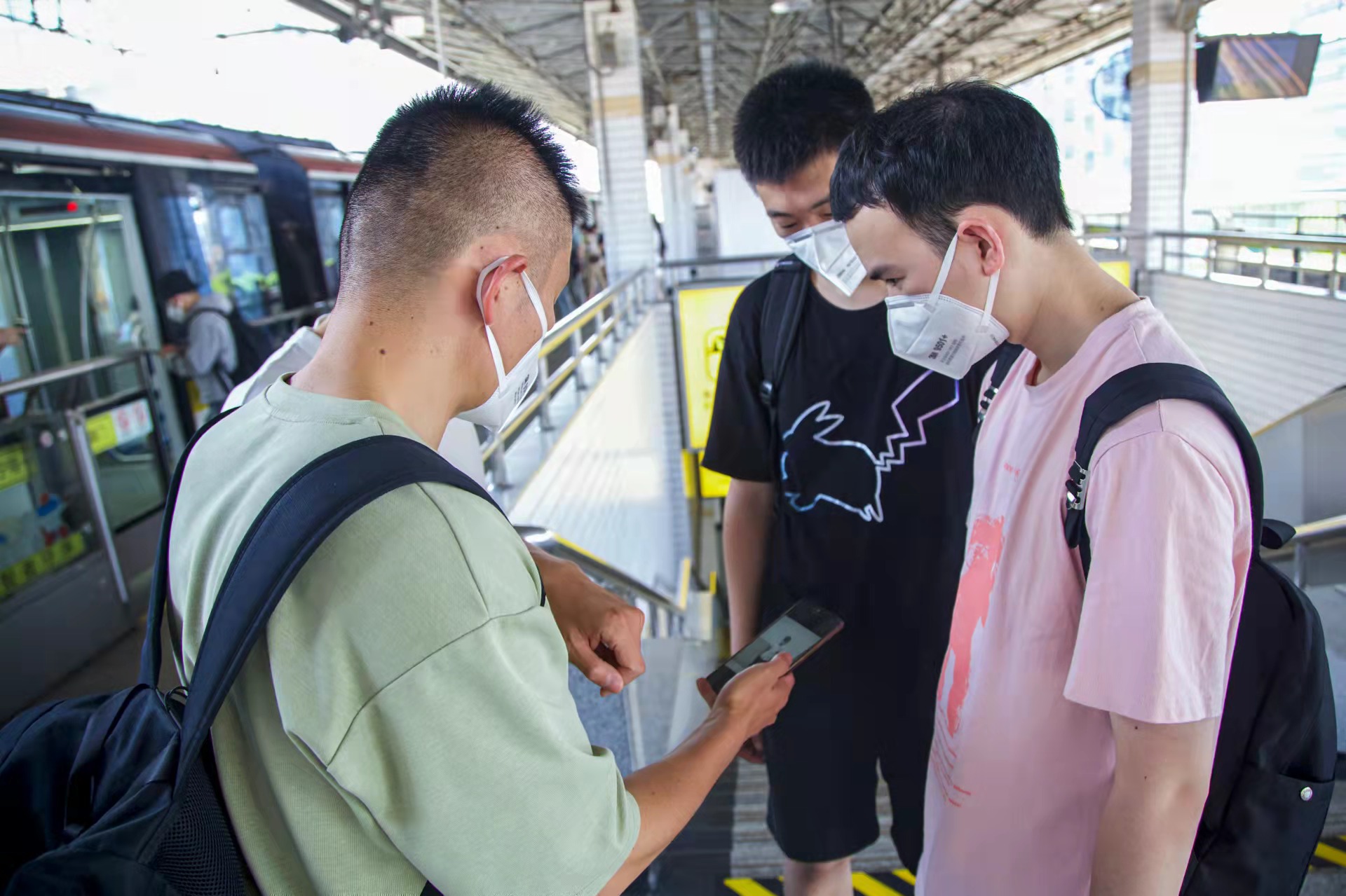 陳建強個頭不高,身材精瘦,常常穿件T恤衫、背只雙肩包混在上班族裏,屬於典型的路人甲或路人乙。他笑言,軌交反扒民警也有「三件套」:警官證、手銬、口罩。口罩是給嫌疑人準備的。每每抓到嫌疑人,第一時間用口罩蒙住他的眼睛,既能防止嫌疑人逃脫,也能更好地保護被害人,還可以防止民警曝光。