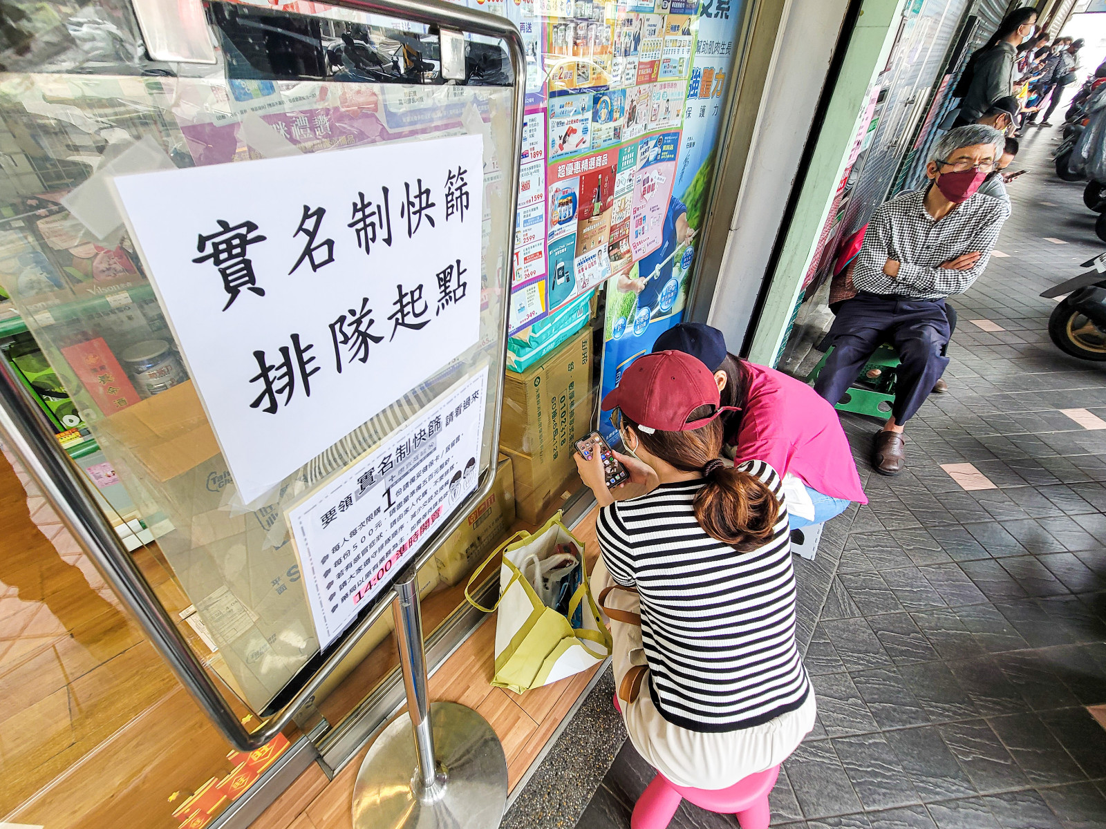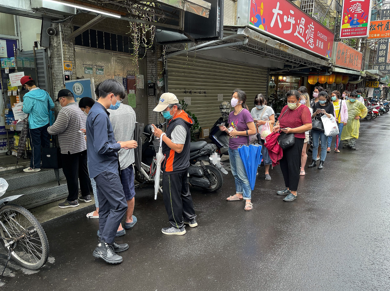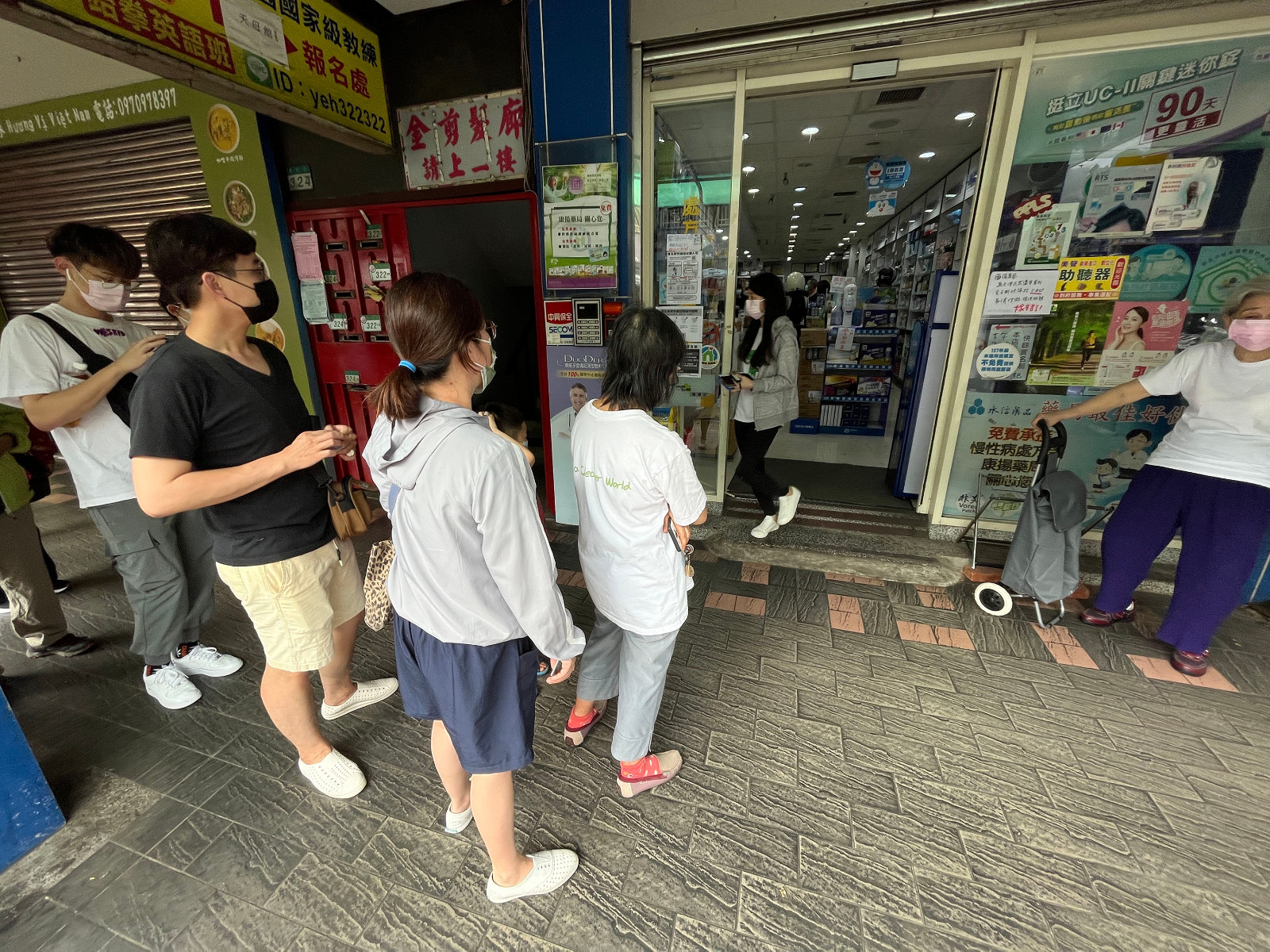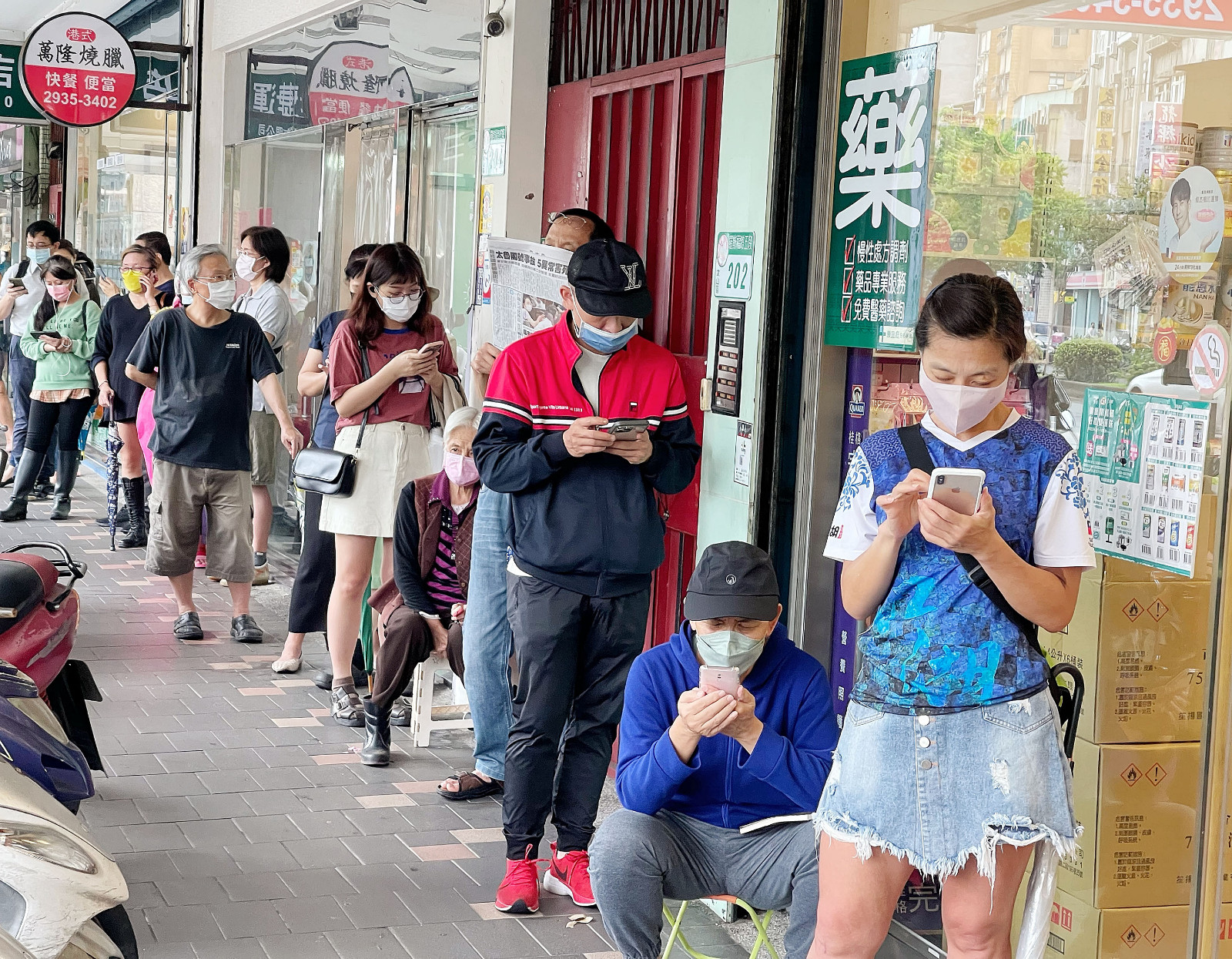 本土疫情升溫,快篩試劑一劑難求!连日来,不少島內民眾在藥店外排隊購買家用快篩劑,甚至有民眾直接帶板凳前來排隊購買實名制快篩試劑。